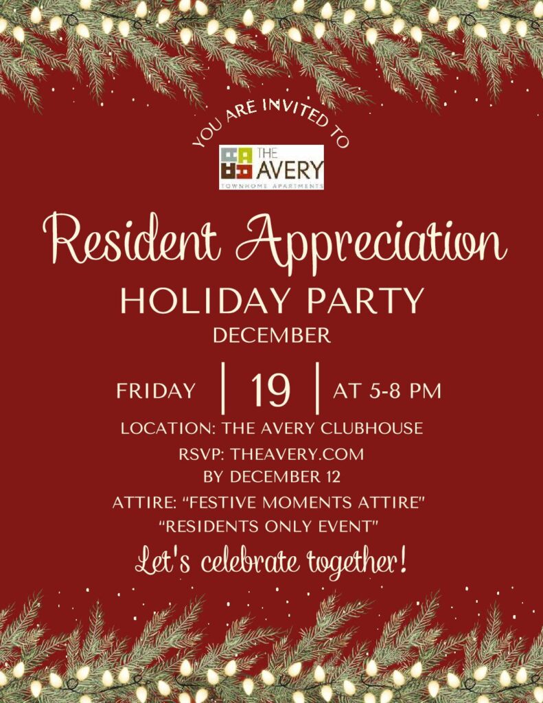 Avery apartments are more than just apartments; we want them to be your home. We host events to keep you entertained, help you socialize, and make friends.